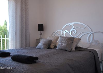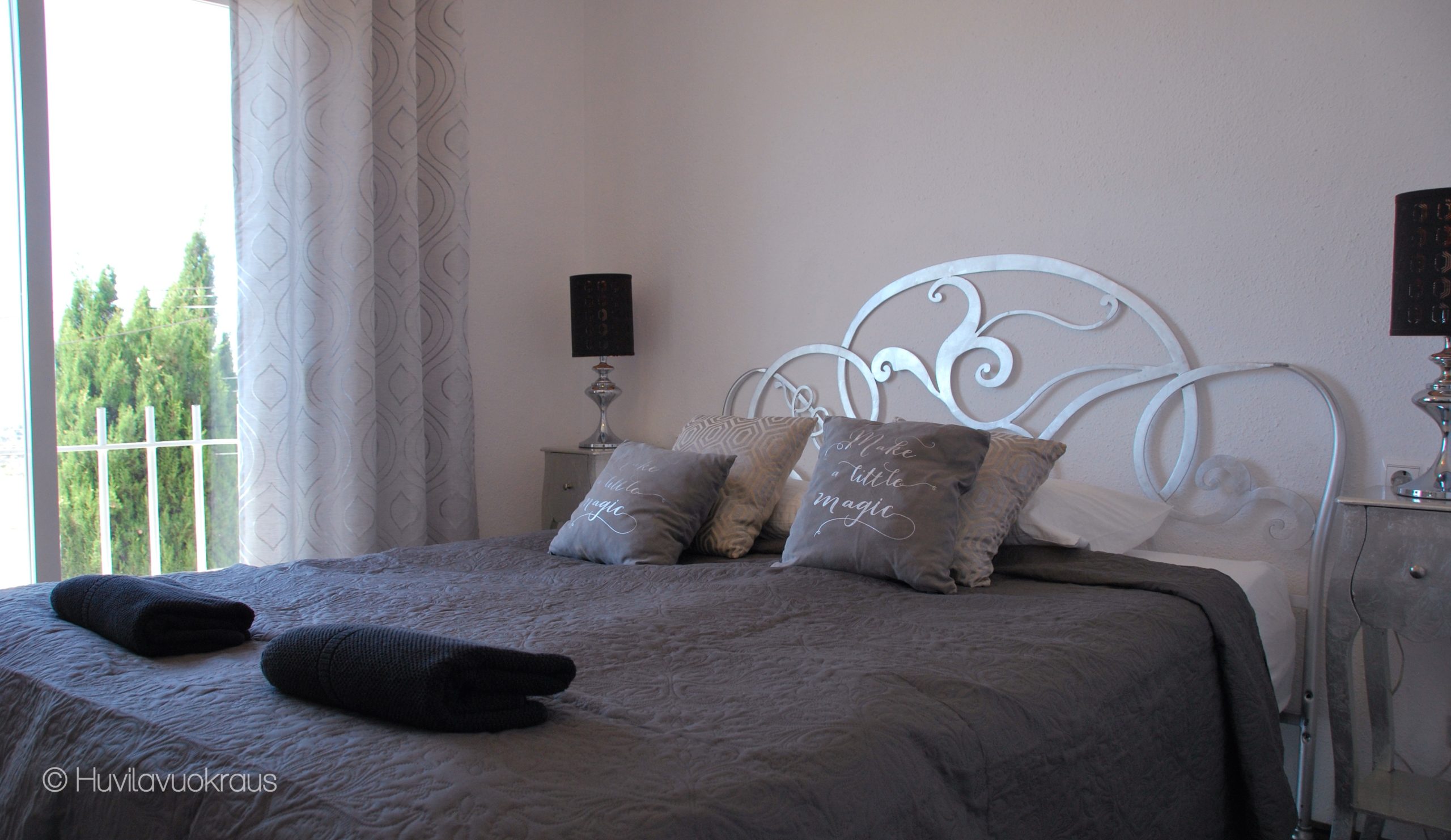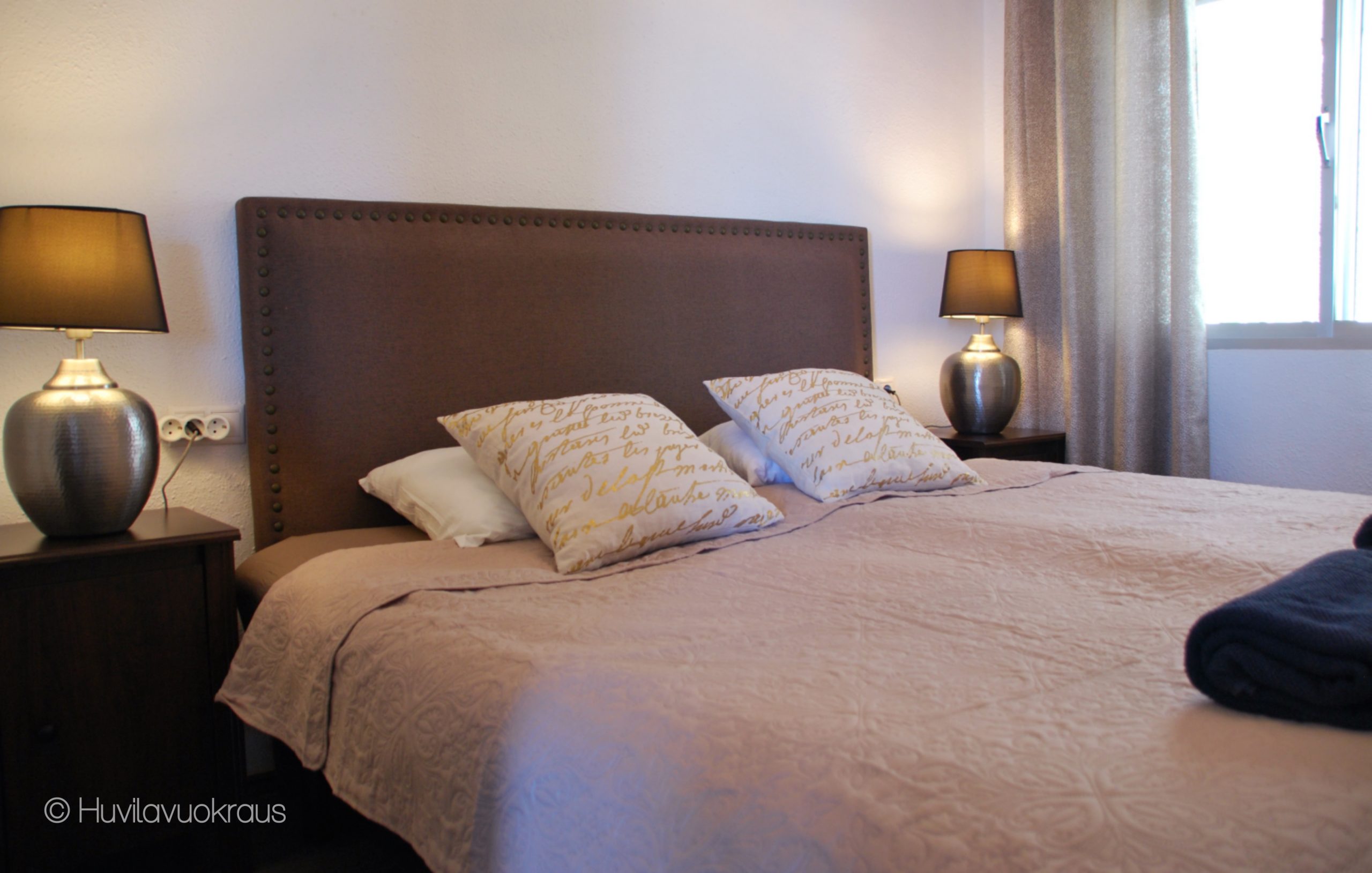 Huvilassa on vuoteet kahdeksalle, neljässä makuuhuoneessa. Lisäksi käytettävissä on vauvan matkasänky ja syöttötuoli.