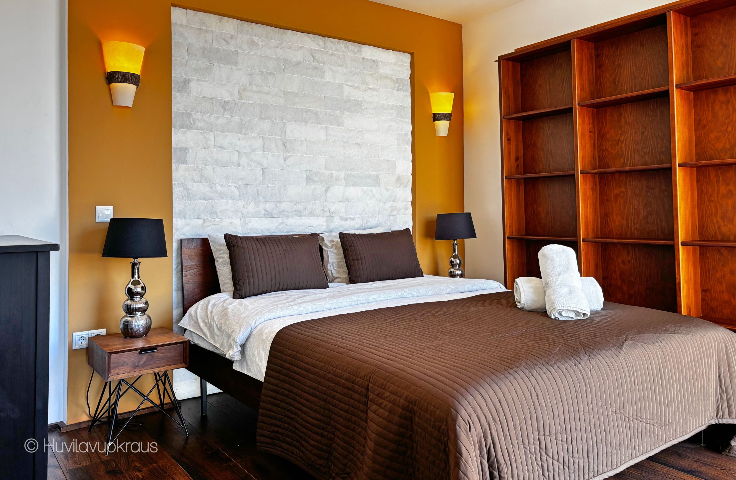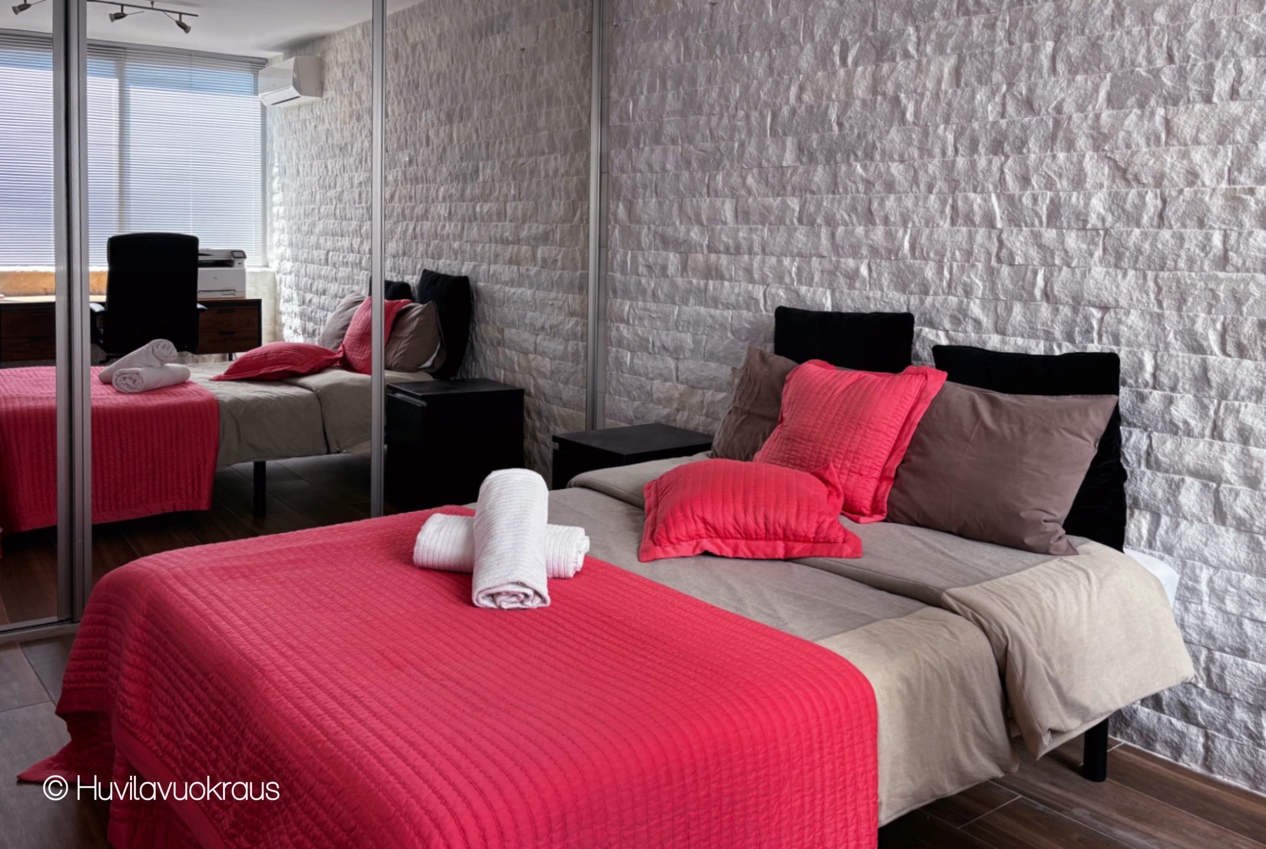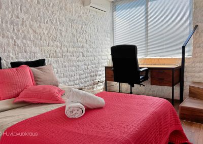 - Seitsemän makuuhuonetta, vuoteet neljälletoista (kolme parivuodetta, muut ovat eriteltävissä). Lisäksi on vuodesohva kahdelle.