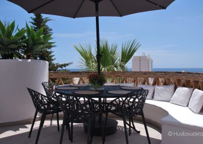 Asunnon terasseilla voit nauttia auringosta ja upeista merinäkymistä koko päivän ja nauttia vaikka aamiaisen tai pitää Andalusialaisen grilli-illan. Terasseita on kolme ja kattoterassilla on oma kahden reiän puttausharjoittelurata golf-päivään valmistautuville tai ihan vain viihteeksi.